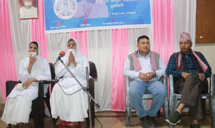 आचार्य महाश्रवणका चेलीहरु समणी निर्वण प्रज्ञाजी र मध्यस्त प्रज्ञाजीले अणुव्रतका बारेमा सहजीकरण गरेको कार्यक्रमको सञ्चालन सुस्मा कार्की जैनले गरेकी थिइन् ।