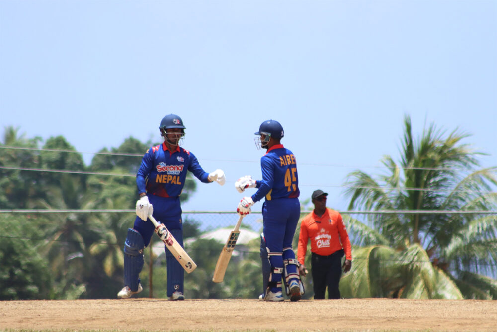 टस जितेर पहिला ब्याटिङ रोजेको नेपालले २० ओभरमा ९ विकेट गुमाउँदै १७९ रन बनाएको थियो । अनिल कुमार साहले २७ बलमा सर्वाधिक ५० रन बनाए । रोहित पौडेलले ३३ बलमा ४१ रन बनाए । कुशल भुर्तेल ३८, दीपेन्द्र २६ रनमा आउट भए ।