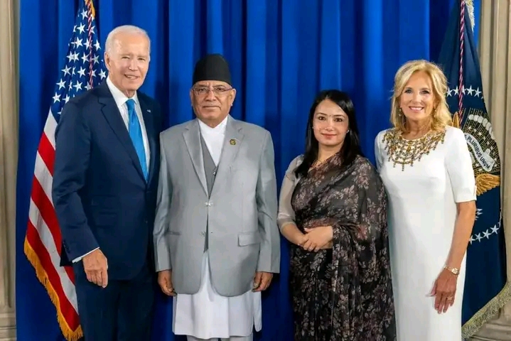 भेटमा राष्ट्रपति बाइडेनकी श्रीमती जिल ज्याकोब र प्रधानमन्त्रीकी छोरी गङ्गा दाहाल पनि सहभागी थिए ।
