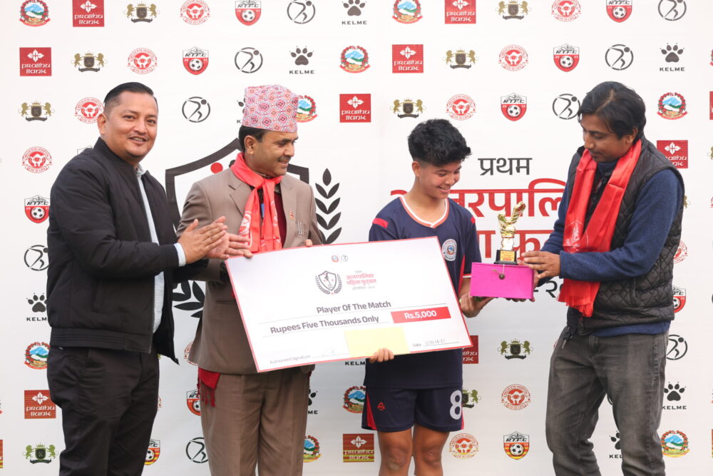 जेनिफरले प्लेयर अफ दी म्याच बन्दै नगद ५ हजार पाइन् । उनलाई बिर्तामोड नगरपालिकाका उपप्रमुख नगेन्द्रप्रसाद संग्रौला, नगर खेलकुद विकास समितिका अध्यक्ष विकास गिरीलगायतले पुरस्कार प्रदान गरे ।