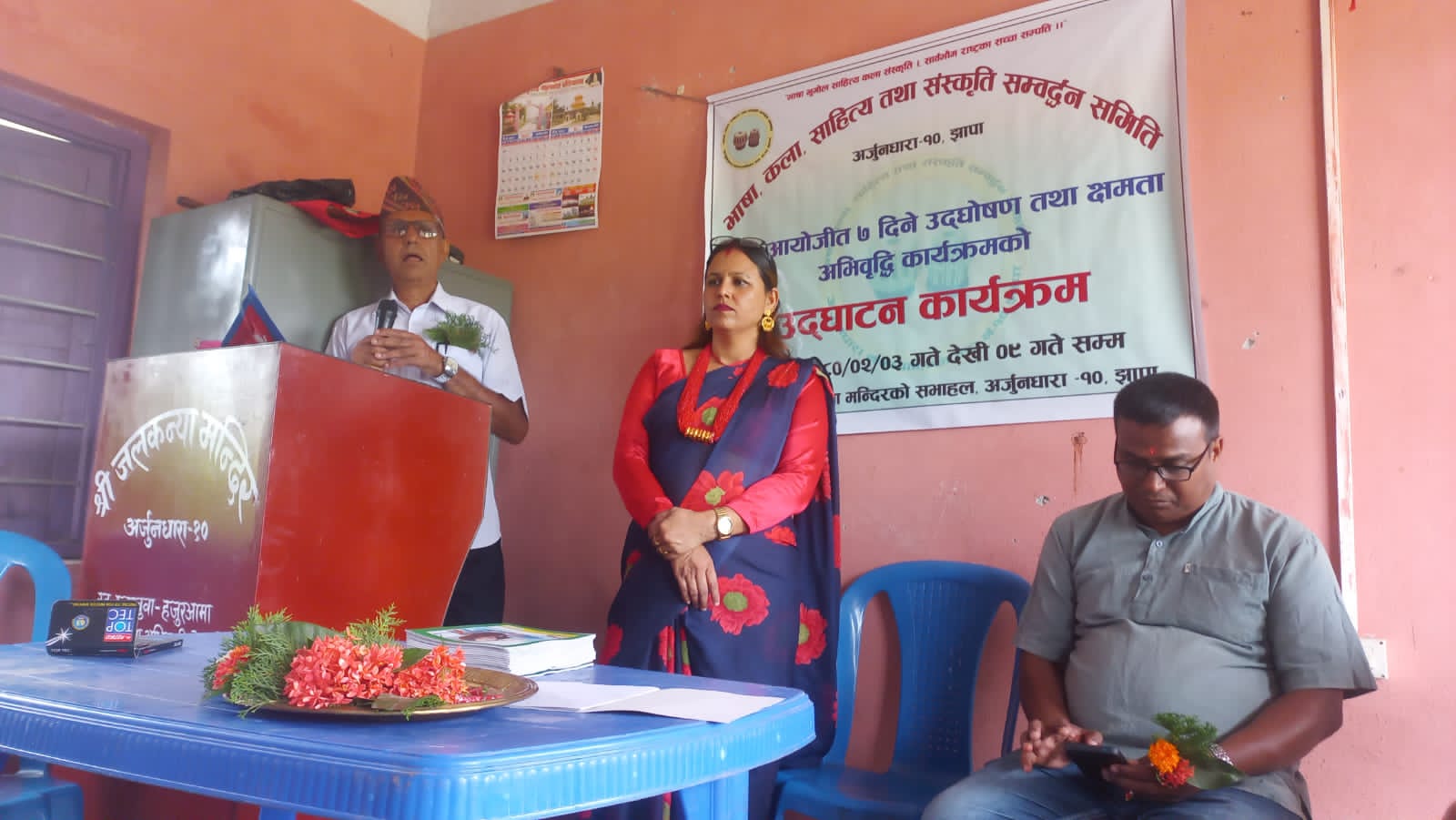 भाषा, कला, साहित्य तथा संस्कृति सम्वर्द्धन समिति अर्जुनधारा-१० को आयोजनामा सुरु भएको तालिममा ३० जनाभन्दा बढीको सहभागिता रहेको छ ।