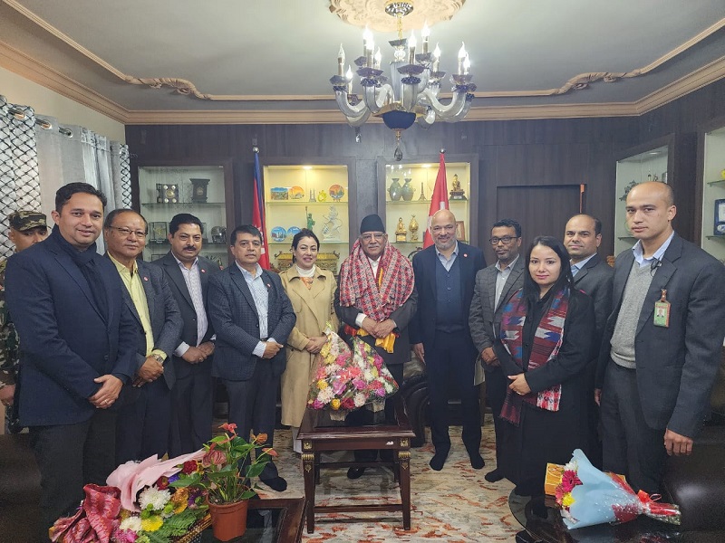 भेटघाटमा महासङ्घका अध्यक्ष शेखर गोल्छाले प्रचण्डलाई सिङ्गो निजी क्षेत्रकातर्फबाट बधाई एवम् शुुभकामना दिएका छन् ।