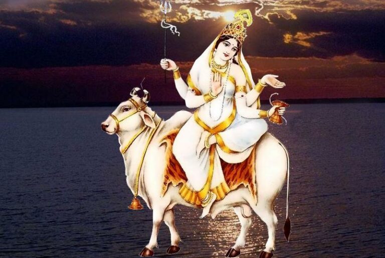 साँढेमा बसेकी यिनले एक हातमा त्रिशूल र अर्को हातमा डमरु लिएकी छिन् । एक हातले अभय र अर्को हातले शान्त मुद्रा प्रदर्शन गरेकी छिन् ।