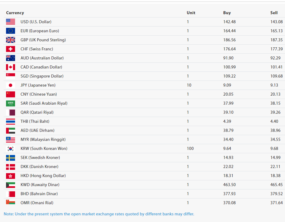 आज अमेरिकी डलर १ को खरिदर १४२ रुपैयाँ ४८ पैसा र बिक्रीदर १४३ रुपैयाँ ०८ पैसा छ।