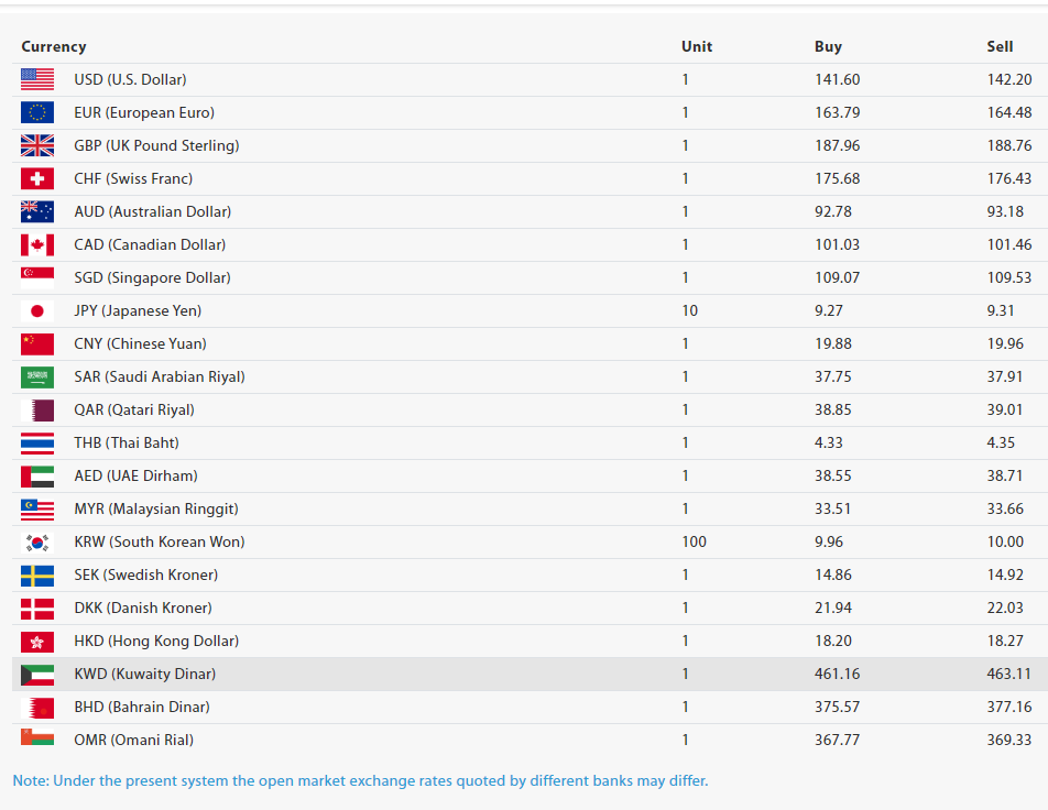 त्यसैगरि आज कुवेती दिनार १ को खरिदर चार सय ६१ रुपैयाँ १६ पैसा र बिक्रीदर ४६३ रुपैयाँ ११ पैसा छ। हिजो कुवेती दिनार १ को खरिदर चार सय ६४ रुपैयाँ ०३ पैसा र बिक्रीदर ४६५ रुपैयाँ ९९ पैसा थियो।