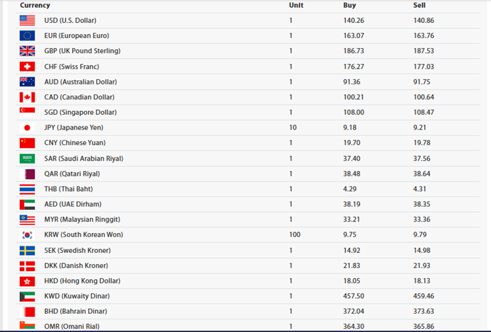 राष्ट्र बैंकका अनुसार अमेरिकी डलर १ को खरिददर १४० रुपैयाँ २६ पैसा र बिक्रीदर १४० रुपैयाँ ८६ पैसा निर्धारण गरिएको छ।