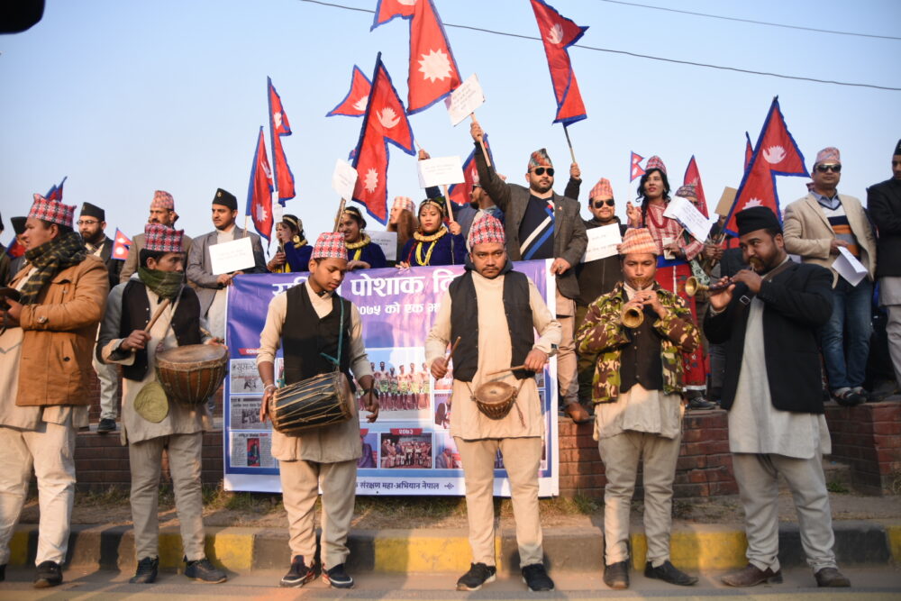 नेपाली युवाले बिर्सँदै गएको राष्ट्रिय पोशाकको पुनःजागरण हुन थालेको छ । औपचारिक रुपमा राष्ट्रिय पोशाक हटाइएपछि युवाहरु जागरुक भएर यो अभियान सुरु गरेका हुन्।