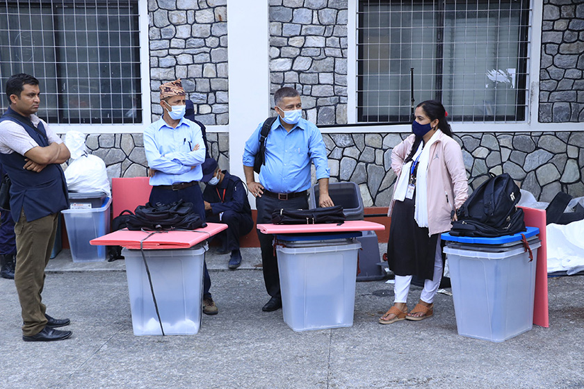 कास्की जिल्लामा निर्वाचनका लागि कर्मचारी । तस्वीर ः राधिका कँडेल, रासस