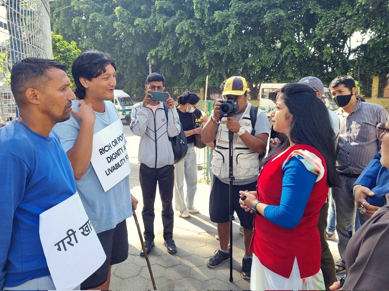 काठमाडौँ, ९ असोज । फुटपाथ व्यवसायीलाई अमानवीय तरिकाले हटाइएको विरोधमा उभिएर विरोध जनाइरहेका अभियन्ता ‘ई’ लाई काठमाडौँ महानगरपालिकाकी उपमेयर सुनीता डङ्गोलले भेटेकी छन् ।