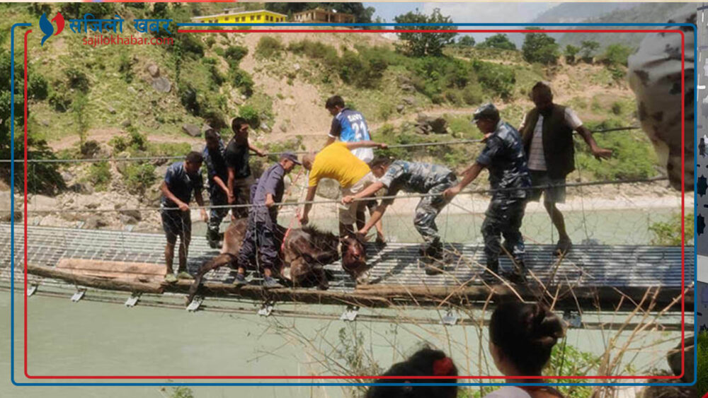 “पुलको जाली काटेर उद्धार गर्ने क्रममा दुई खच्चडको मृत्यु भएको हो”, उहाँले भन्नुभयो–“बाँकीको डुङ्गाको सहायताले जीवितै उद्धार गर्न सफल भयौँ ।”