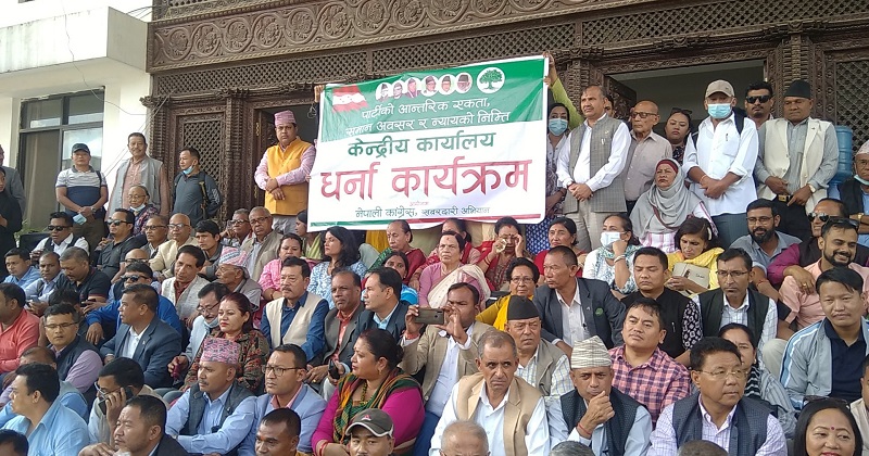 काठमाडौँ, १२ असोज । नेपाली कांग्रेसको केन्द्रीय कार्यालय सानेपामा डा.शेखर कोइराला समूहले धर्ना दिएको छ । बुधबार दिउँसो १ बजेदेखि कोइराला समूहका नेता कार्यकर्ता धर्नामा बसेका छन् ।