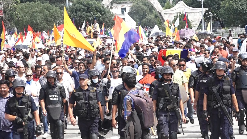 भृकुटीमण्डपबाट शुरु भएको विरोध र्याली रत्नमापर्कमा पुगेर सभामा परिणत भएको थियो ।