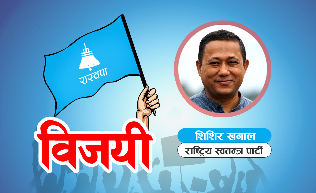 काठमाडौँ, ७ मंसिर । काठमाडौँ-६ मा राष्ट्रिय स्वतन्त्र पार्टीका उम्मेदवार शिशिर खनाल विजयी भएका छन् ।
