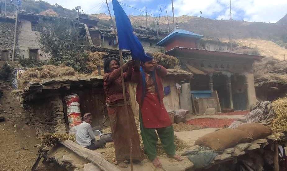 हुम्ला, १९ कात्तिक । यसवर्ष गर्भवती भएका महिलाको घरमा निलो झण्डा गाड्ने काम सुरु भएको छ । गर्भवतीको घर पहिचान गरी स्वास्थ्यकर्मीलाई चेकजाँच गर्न र घरमा गर्भवती भएको महिला जानकारी गराउन स्वास्थ्य चौकीले झण्डा गाड्ने काम सुरु गरेको हो ।