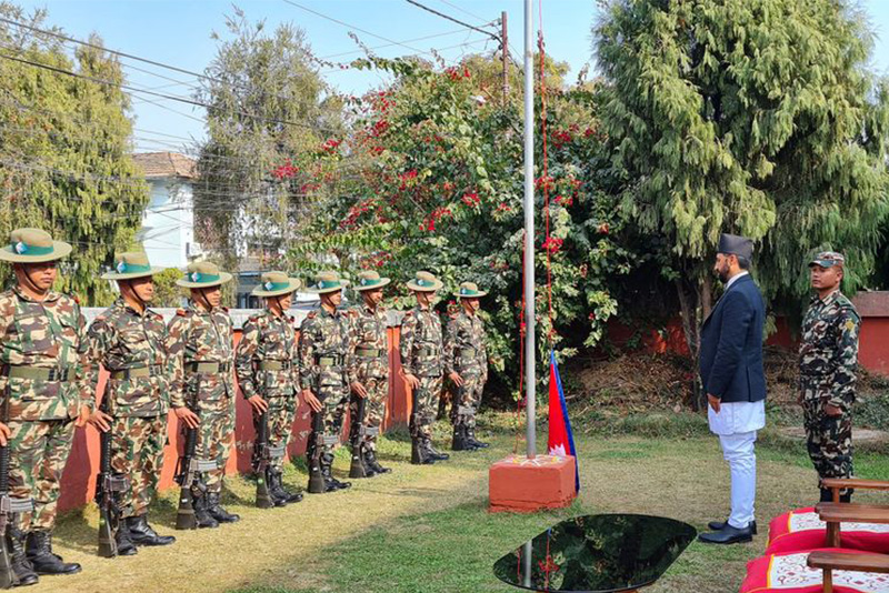 सरकारी निवासमा मन्त्री लामिछानेले झन्डोत्तोलन गर्नुका साथै उनलाई नेपाली सेनाको एक टुकडीले सलामीसमेत दिएको थियो ।