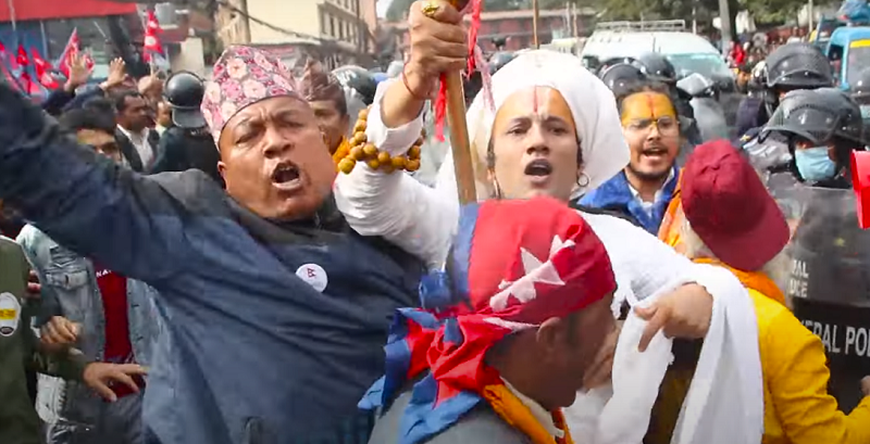काठमाडौँ, ११ मङ्सिर । दुर्गा प्रसाईं नेतृत्वको ‘राष्ट्र, राष्ट्रियता, धर्म, संस्कृति र नागरिक बचाउ महाअभियान’ मा सहभागी प्रदर्शनकारी र प्रहरीबीच गौशालामा झडप भएको छ ।