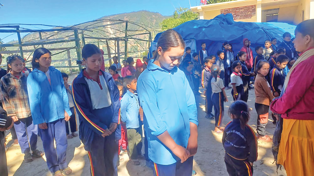 विद्यालयले प्रार्थना समयमा गरेको मौनधारण कार्यक्रममा उपस्थित शिक्षक, विद्यार्थीहरूका आँखा ओभानो रहन सकेनन् । भत्किएका भवन र तीन जना विद्यार्थी गुमाउँदाको पीडाले विद्यालयमा सन्नाटा छाएको छ । कृष्णालाई कक्षा ४ देखि नै सँगै पढ्दै आएका साथी गुमाउँदाको पीर जति लागेको छ, अरू साथीलाई पनि उस्तै वेदना छ ।