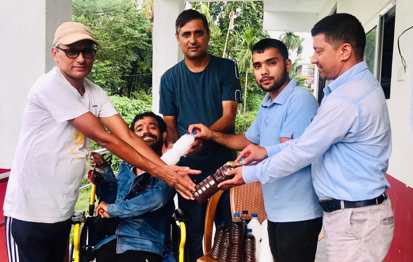 मेचीनगरमा अपाङ्गहरुमा रोजगारी सृजना गर्दै अपाङ्गहरुको हकहितका लागि साथै अन्य सामाजिक क्षेत्रमा क्रियाशिल अपाङ्ग मैत्री सेवा स्वरोजगार संस्थाले मेचीनगर नगरपालिका वडा नं.१० वडा कार्यालयलाई १० लिटर फिनेल प्रदान गरेको हो ।