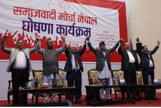 सत्तारूढ गठबन्धनमा रहेकाे नेकपा (माओवादी केन्द्र), जनता समाजवादी पार्टी (जसपा), नेकपा (एकीकृत समाजवादी) र संसदबाहिर रहेकाे नेकपा कम्युनिस्ट पार्टी मिलेर सोमवार समाजवादी माेर्चा घाेषणा गरेका हुन् ।