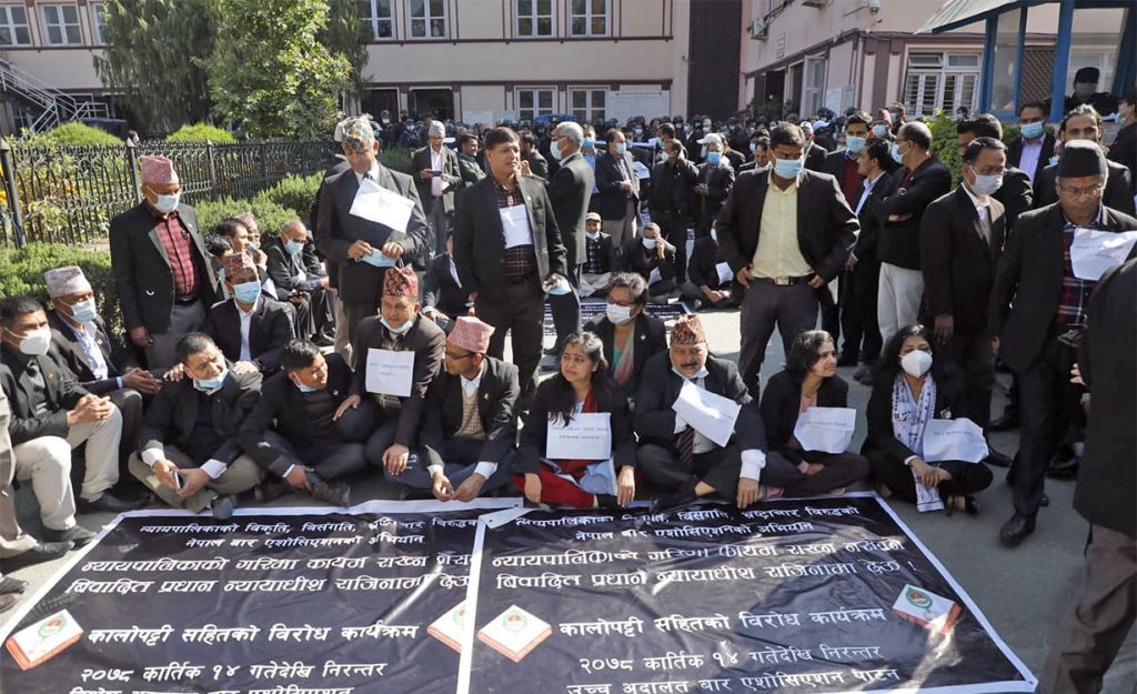 काठमाडौँ, २१ मंसिर । सङ्घीय संसद्का महासचिव डाक्टर भरतराज गौतमले निलम्बित प्रधानन्यायाधीश चोलेन्द्रशम्शेर जबराको महाअभियोग निष्क्रिय भएको पत्र पठाएपछि नेपाल बार एसोसिएशनले आन्दोलन थालेको छ ।