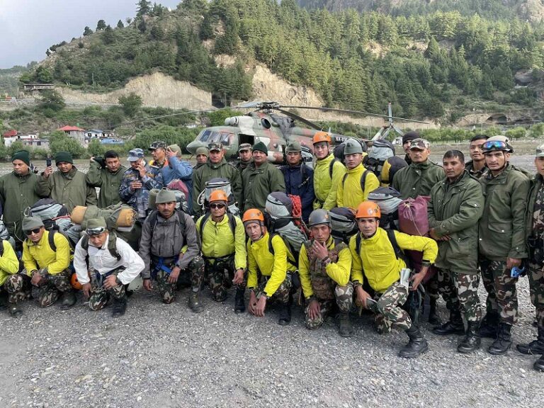 मुस्ताङ, १६ जेष्ठ । तारा एअरको जहाज दुर्घटनास्थलमा नेपाली सेना र प्रहरीसहितको उद्धार टोली पुगेको छ ।