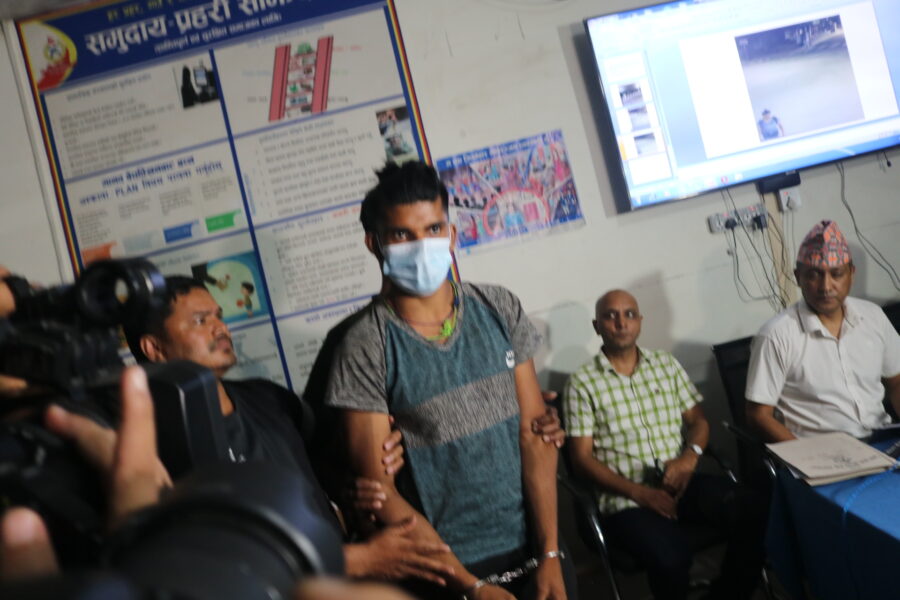 आज जिल्ला प्रहरी परिसर काठमाडौँमा पत्रकार सम्मेलनको आयोजना गरी निज अभियुक्तलाई प्रहरीले सार्वजनिक गरेको हो । उक्त घटनापछि खुकुरीसहित भागेका निज आरोपीलाई प्रहरीले सिसी टिभी फुटेजको सहयोगमा पक्राउ गरेको काठमाडौँ उपत्यका अपराध अनुसन्धान कार्यालयका प्रहरी वरिष्ठ उपरीक्षक सोमेन्द्रसिंह राठौरले पत्रकार सम्मेलनमा बताए ।