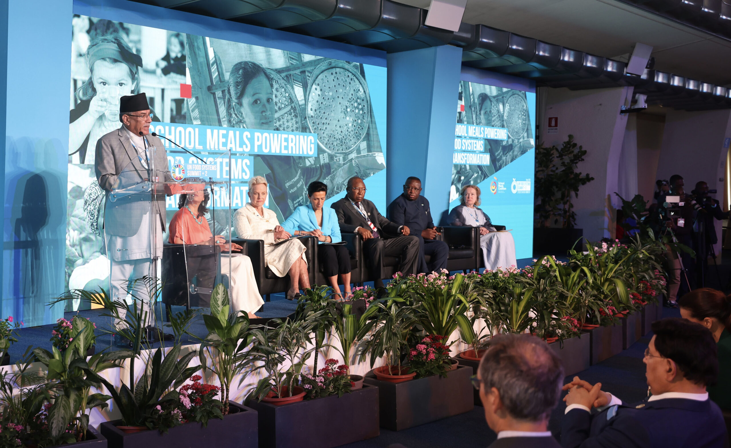 खाद्य तथा कृषि सङ्गठनको मुख्यालय इटालीको रोममा आयोजित ‘युनाइटेड नेसन्स फुड सिस्टम-२०२३ स्टकिङ मोमेन्ट’ लाई आज सम्बोधन गर्दै उनले नेपालमा लागू गरिएको विद्यालय खाजा कार्यक्रम विद्यार्थीको स्वास्थ्य र समग्र शैक्षिक सुधारका लागि प्रभावकारी भएको स्पष्ट पारेका थिए । सो कार्यक्रमबाट प्रत्यक्ष रूपमा ३३ लाख बालबालिका प्रत्यक्ष रूपमा लाभान्वित भएको तथ्याङ्कसमेत प्रधानमन्त्री दाहालले पेस गरेका थिए ।