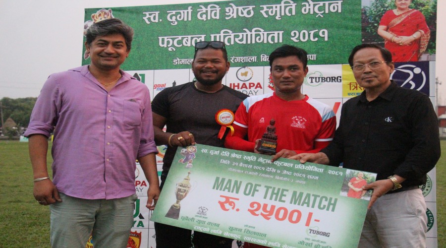 बिकर्णले खेलको १० औँ, २२ औँ, २६ औँ र ४० औँ मिनेटमा गोल गरे । त्यस्तै, खेलको ३० औँ मिनेटमा विशाल राई ए र ३४ औँ मिनेटमा रमेश गुरुङले एकएक गोल गरे । प्रतियोगिताको प्लेयर अफ द म्याच ४ गोलकर्ता बिकर्ण श्रेष्ठ भए ।