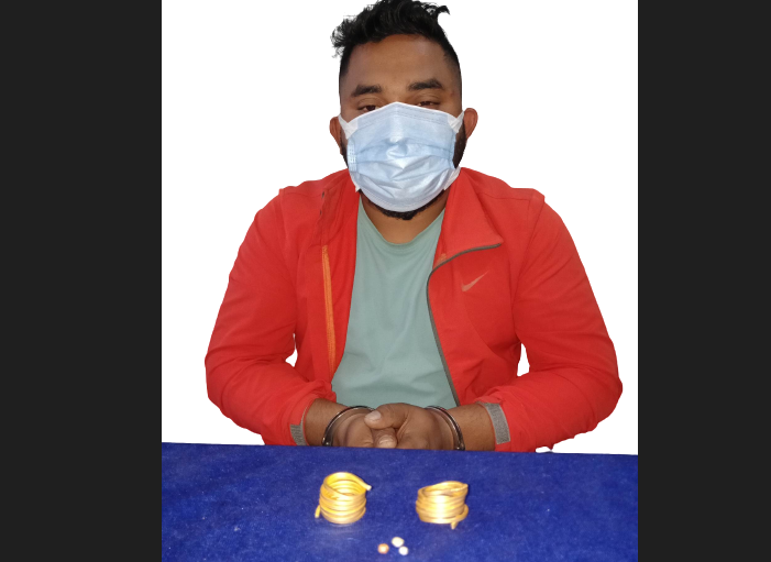 झापा, २३ पुस । नक्कली सुनका गहना देखाएर ठगी गर्ने इलाम फाक्फोकथुम वडा नम्बर ५ का २६ वर्षीयका दिनेश श्रेष्ठ भनिने शेरबहादुर बराइली शुक्रवार धुलाबारीबाट पक्राउ परेका छन् ।