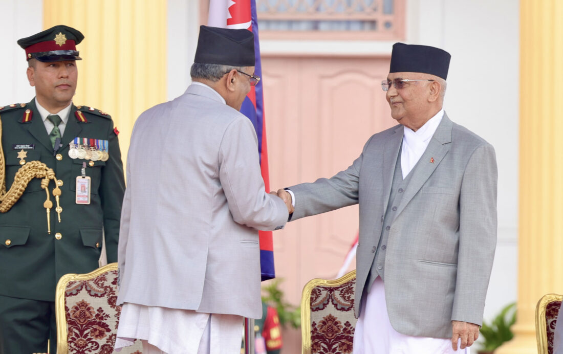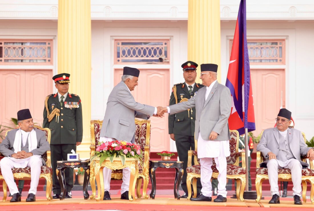 राष्ट्रपति पौडेलले आइतबार नेपालको संविधानको धारा, ७६ (२) बमोजिम नेपाली कांग्रेस र नेपाल कम्युनिष्ट पार्टी ९एमाले० को समर्थनमा एमालेका अध्यक्ष ओलीलाई प्रधानमन्त्रीमा नियुक्त गर्नुभएको थियो । प्रतिनिधिसभाका दुई ठूला राजनीतिक दल कांग्रेस र एमालेबीच यही असार १७ गते भएको सहमतिसँगै अध्यक्ष ओली प्रधानमन्त्रीमा नियुक्त हुनुभएको हो ।