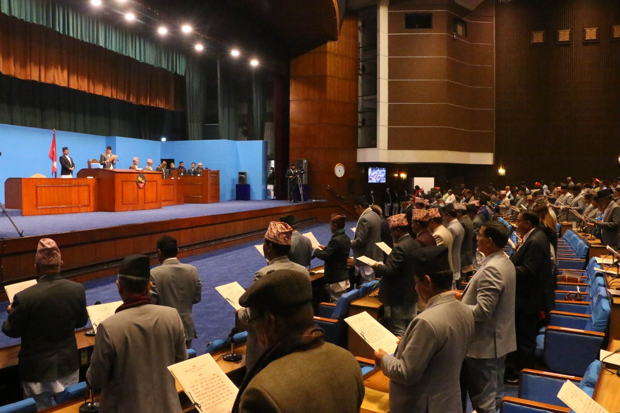 काठमाडौँ, ७ पुस । प्रतिनिधिसभाका नवनिर्वाचित सदस्यहरूले बिहीबार पद तथा गोपनीयताको शपथ लिएका छन् ।