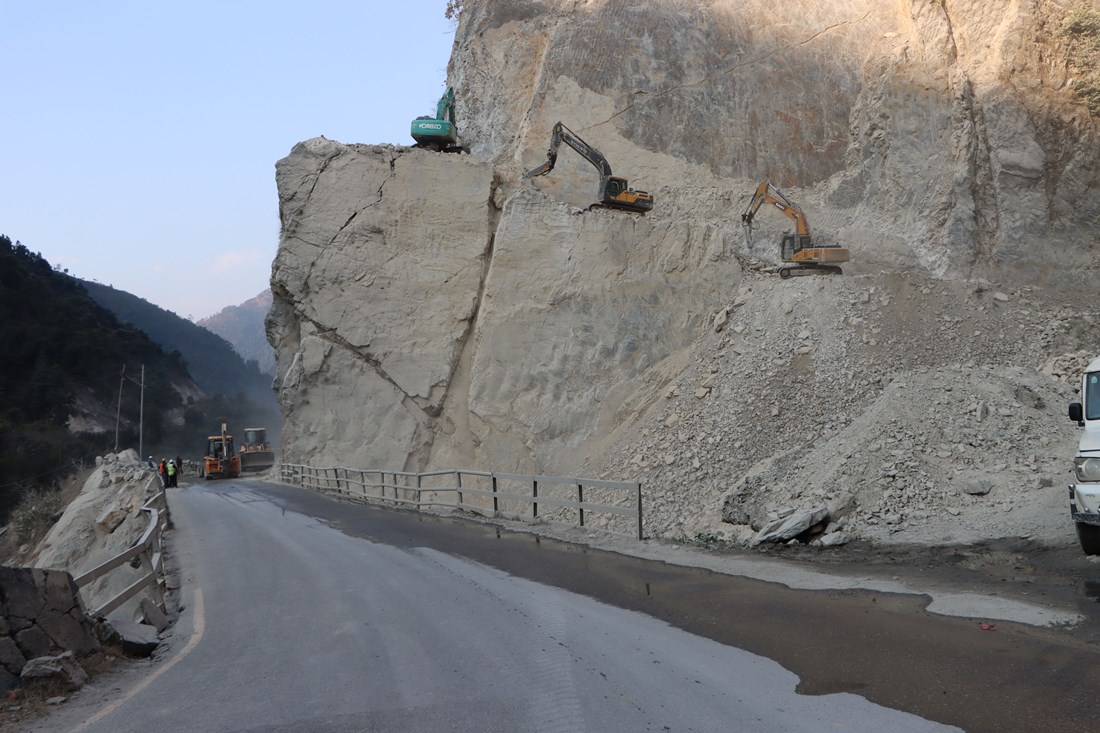 चितवन, १४ माघ । नारायणगढ-मुग्लिन सडकखण्डको तुइन खोलामा पुल बनाउन सवारीसाधन रोकेर भित्तो काट्ने काम अन्तिम चरणमा पुगेको छ । विष्फोट गराउनका लागि प्रक्रिया अगाडि बढाइरहेका बेला अन्तिम प्रयासका रुपमा थालिएको भित्तो काट्ने काम अन्तिम चरणमा पुगेको हो ।
