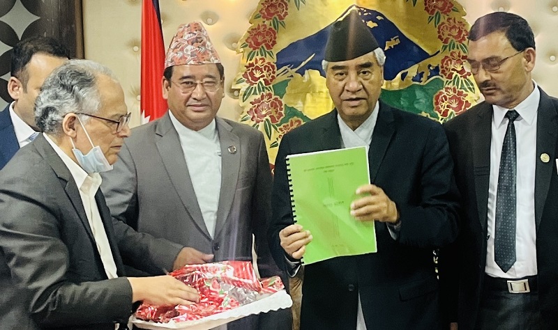 काठमाडौँ, २ असोज । प्रधानमन्त्री शेरबहादुर देउवालाई अन्तर्राष्ट्रिय विमानस्थल निर्माण सम्बन्धमा सरकारले गठन गरेको विज्ञ समूहले अध्ययन प्रतिवेदन हस्तान्तरण गरेको छ । प्रधानमन्त्री निवास बालुवाटारमा आज बिहान आयोजित कार्यक्रममा संस्कृति, पर्यटन तथा नागरिक उड्डययनमन्त्री जीवनराम श्रेष्ठको उपस्थितिमा विज्ञ समूहका संयोजक वीरेन्द्रबहादुर देउजाले प्रधानमन्त्री देउवालाई प्रतिवेदन हस्तान्तरण गरेका हुन् ।