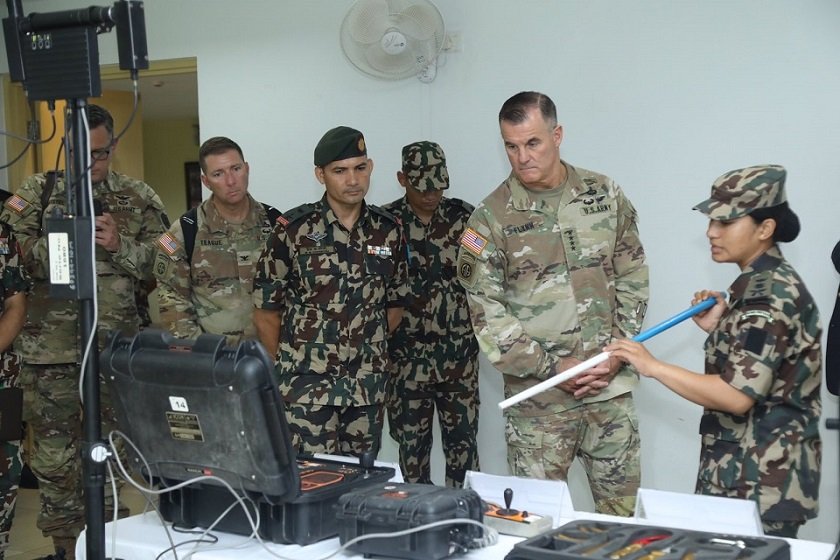 काठमाडौँ, ३० जेठ । अमेरिकी सेनाका एसिया–प्रशान्त क्षेत्र प्रमुख चाल्र्स ए फ्लिनले नेपाली सेना एक भरपर्दाे जमिनी शक्ति भएको बताएका छन् । चारदिने औपचारिक भ्रमणका क्रममा फ्लिनले आइतबार शिवपुरीस्थित सैनिक कमान्ड तथा स्टाफ कलेज भ्रमणपश्चात् आयोजित समारोहमा यस्तो बताएका हुन् । उनले नेपाली सेना संसारकै पुरानो सेनामध्ये एक रहेको समेत बताएको सैनिक जनसम्पर्क तथा सूचना निर्देशनालयले जनाएको छ ।