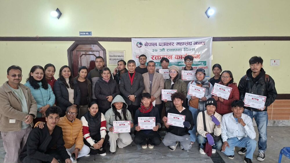 हाल झापामा रगतको अभाव देखिएको हुँदा मानवीय सेवामा टेवा पु¥याउने उद्देश्यले आफ्नो स्थापना दिवसलाई पत्रकार महासंघ झापाले रक्तदान कार्यक्रम गरेर मनाएको बताइएको छ । महासंघ झापाका अध्यक्ष एकराज गिरीको अध्यक्षता र नेपाल रेडक्रस सोसाइटी झापाका सभापति लोकराज ढकालको प्रमुख आतिथ्यमा बिर्तामोडस्थित अतिथि सदनमा भएको कार्यक्रममा ५५ जनाले रक्तदान गरेका थिए ।