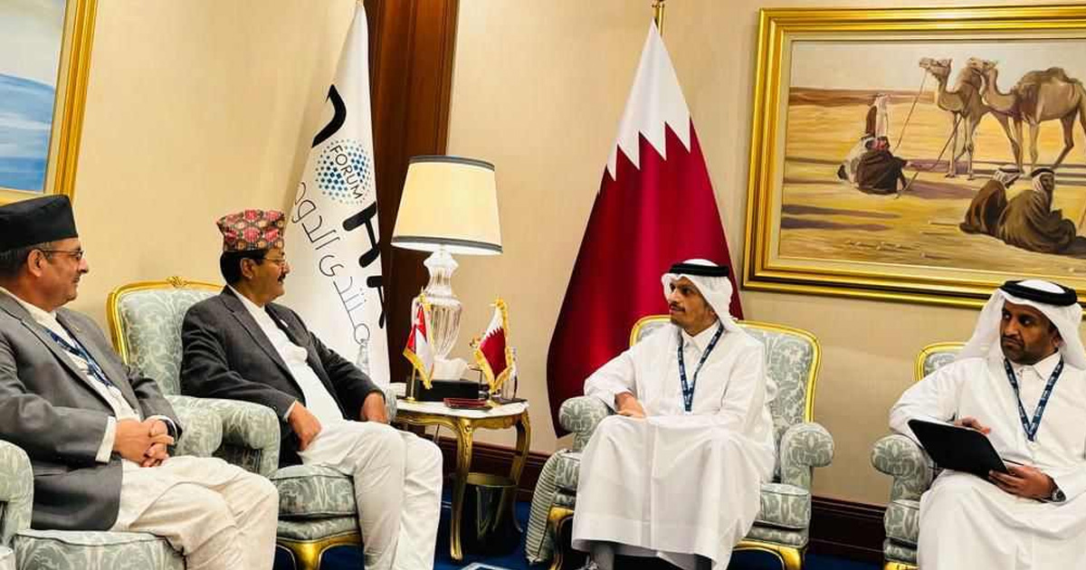 काठमाडौँ, २५ मङ्सिर । परराष्ट्रमन्त्री एनपी साउद र कतारका प्रधानमन्त्री शेख मोहम्मद बिन अब्दुल रहमान अल-थानीबीच शिष्टाचार भेटवार्ता भएको छ ।
