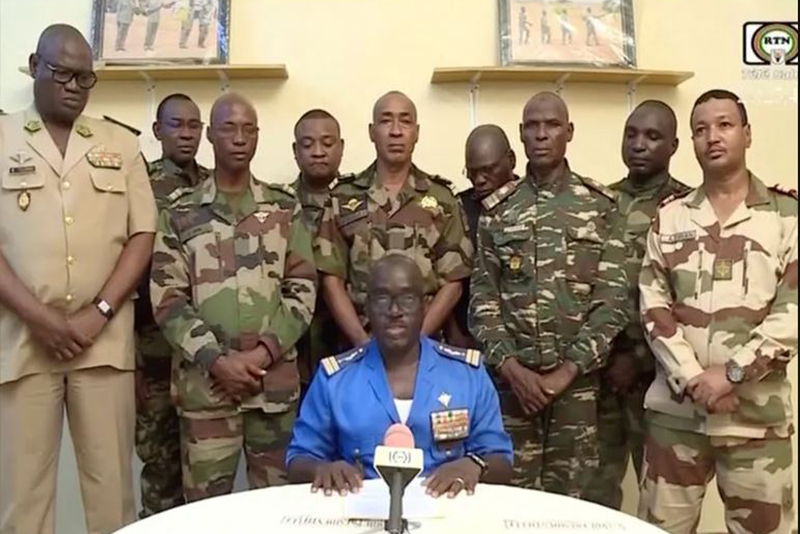 नाइजर, ११ साउन । पश्चिम अफ्रिकी देश नाइजरमा सैनिकले राष्ट्रिय टेलिभिजनमार्फत विद्रोहको घोषणा गरेको छ । त्यहाँको सैनिकले संविधान विघटन, सबै संस्था निलम्बन र राष्ट्रको सिमाना बन्द गरेको बताएको छ ।