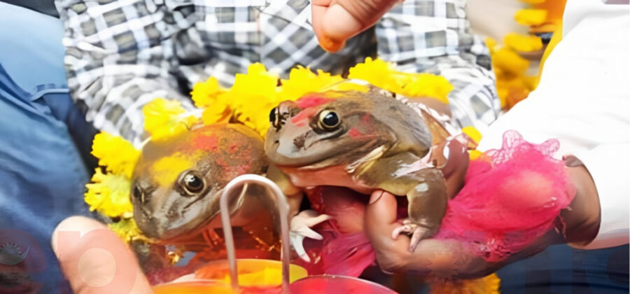 झापा, २३ वैशाख । लामो समयसम्म पानी नपरेर खडेरीको सामना गर्नु परेको भन्दै झापा अर्जुनधाराका किसानहरुले शनिबार भ्यागुताको विवाह गरिदिएका छन् । अर्जुनधारा वडा नम्बर २ का किसानले टाङटिङ खोलामा जोडी भ्यागुताको विवाह गरिदिएका हुन् ।