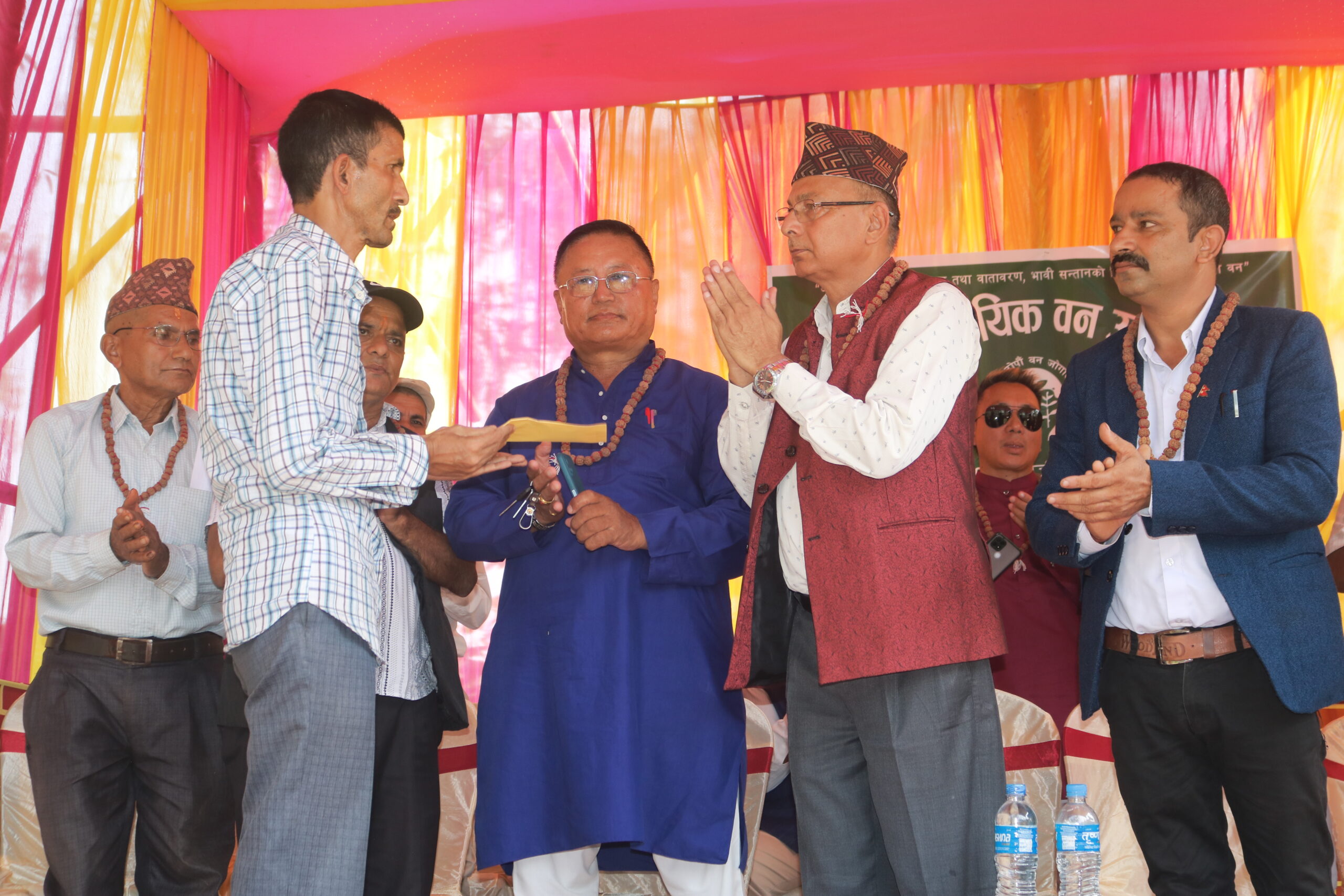 वनका अध्यक्ष निरौलाले प्रतिवेदन प्रस्तुत गर्दै समूहमा मेचीनगर नगरपालिका वडा नं. १२ र १३ तथा अर्जुनधारा नगरपालिका वडा नं. १० र ११ गरि चार वटा वडाका ८०५ घरधुरी उपभोक्ता रहेको बताए ।