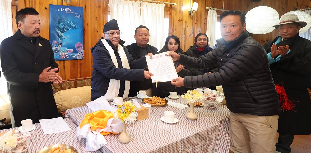 सोलुखुम्बु, २ मङ्सिर । सोलुखुम्बुको खुम्बु पासाङल्हामु गाउँपालिकाले प्रधानमन्त्री पुष्पकमल दाहाल ‘प्रचण्ड’ समक्ष विभिन्न तीनबुँदे मागसहितको ज्ञापनपत्र बुझाएको छ ।