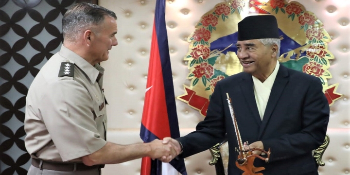 काठमाडौँ, २७ जेठ । प्रधानमन्त्री शेरबहादुर देउवासँग अमेरिकी सेनाका एसिया-प्रशान्त क्षेत्र प्रमुख चार्ल्स ए फ्लिनले शिष्टाचार भेटवार्ता गरेका छन् ।