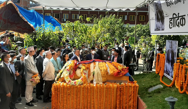 काठमाडौँ, ३० असोज । वाङ्मय शताब्दी पुरुष सत्यमोहन जोशीको पार्थीव शरीरमा प्रधानमन्त्री एवम् नेपाली कांग्रेसका सभापति शेरबहादुर देउवा र नेकपा माओवादी केन्द्रका अध्यक्ष पुष्पकमल दाहाल प्रचण्डले श्रद्धाञ्जली अर्पण गरेका छन् ।