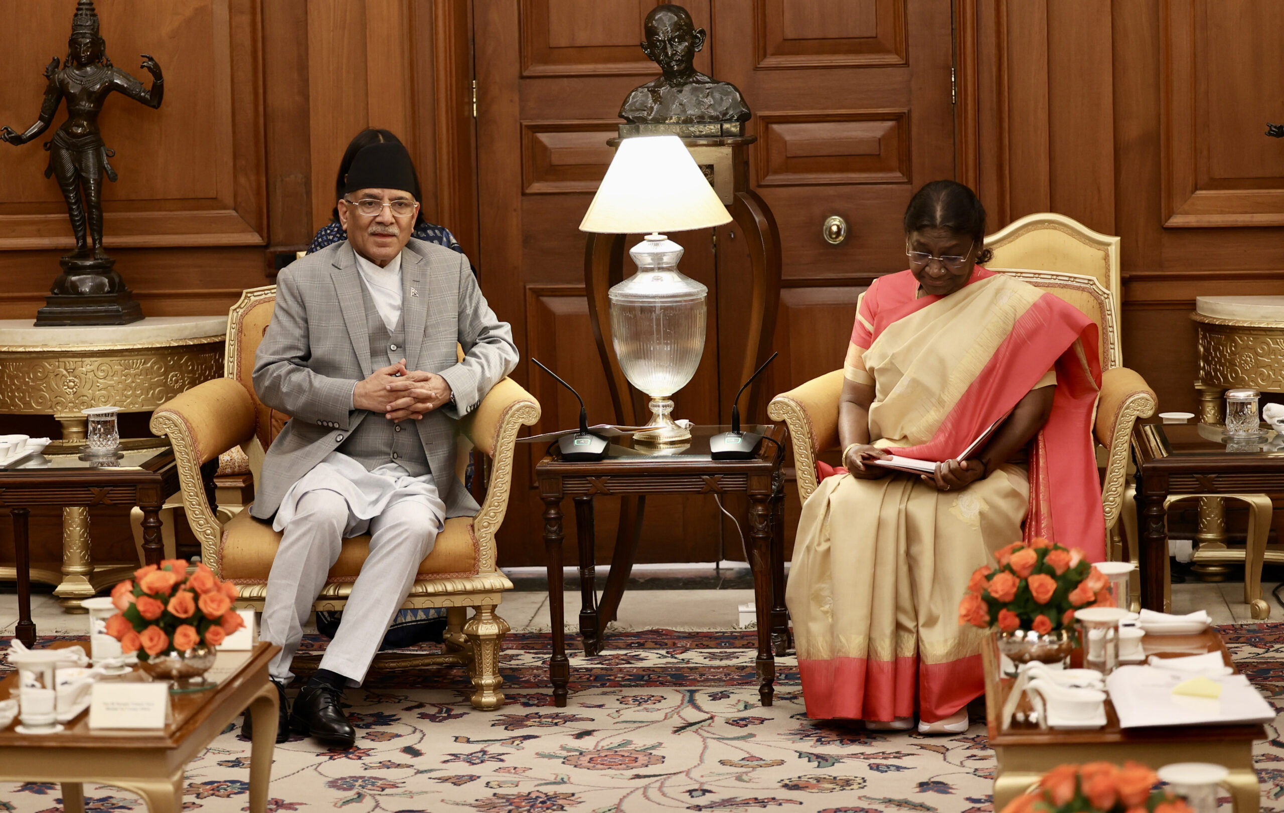 नयाँदिल्ली, १८ जेठ । भारत भ्रमणमा रहेका प्रधानमन्त्री पुष्पकमल दाहाल ‘प्रचण्ड’ ले भारतका राष्ट्रपति द्रौपदी मुर्मूसँग शिष्टाचार भेटवार्ता गरेका छन् ।