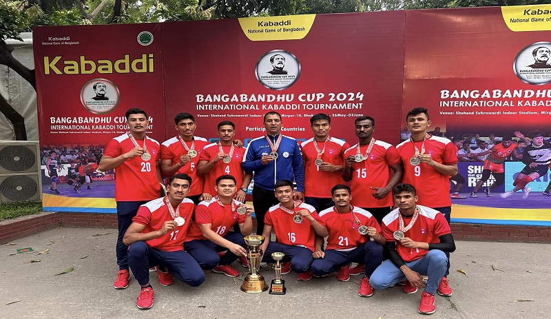 काठमाडौँ, २२ जेठ । बंगबन्धु कप अन्तर्राष्ट्रिय पुरुष कबड्डी प्रतियोगितामा नेपाल उपविजेता बनेको छ । बङ्ग्लादेशको राजधानी ढाकामा हिजो भएको फाइनलमा आयोजक बङग्लादेशसँग ४५–३१ ले पराजित भएपछि नेपाल उपविजेतामै सीमित बनेको हो । बङ्ग्लादेशले थाइल्याण्डलाई र नेपालले केन्यालाई पराजित गर्दै फाइनल पुगेका थिए ।