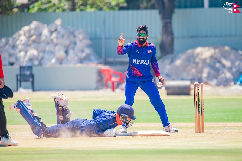नेपालका लागि सन्दीप जोराले सर्वाधिक ५६ रन बनाए । उनले ४३ बल खेल्ने क्रममा चार छक्का र तीन चौका प्रहार गरे भने विवेक यादवले १७, कुशल भुर्तेलले १६ रन बनाए भने अन्य ब्याटरले उल्लेखनीय रन बनाउन सकेनन् ।