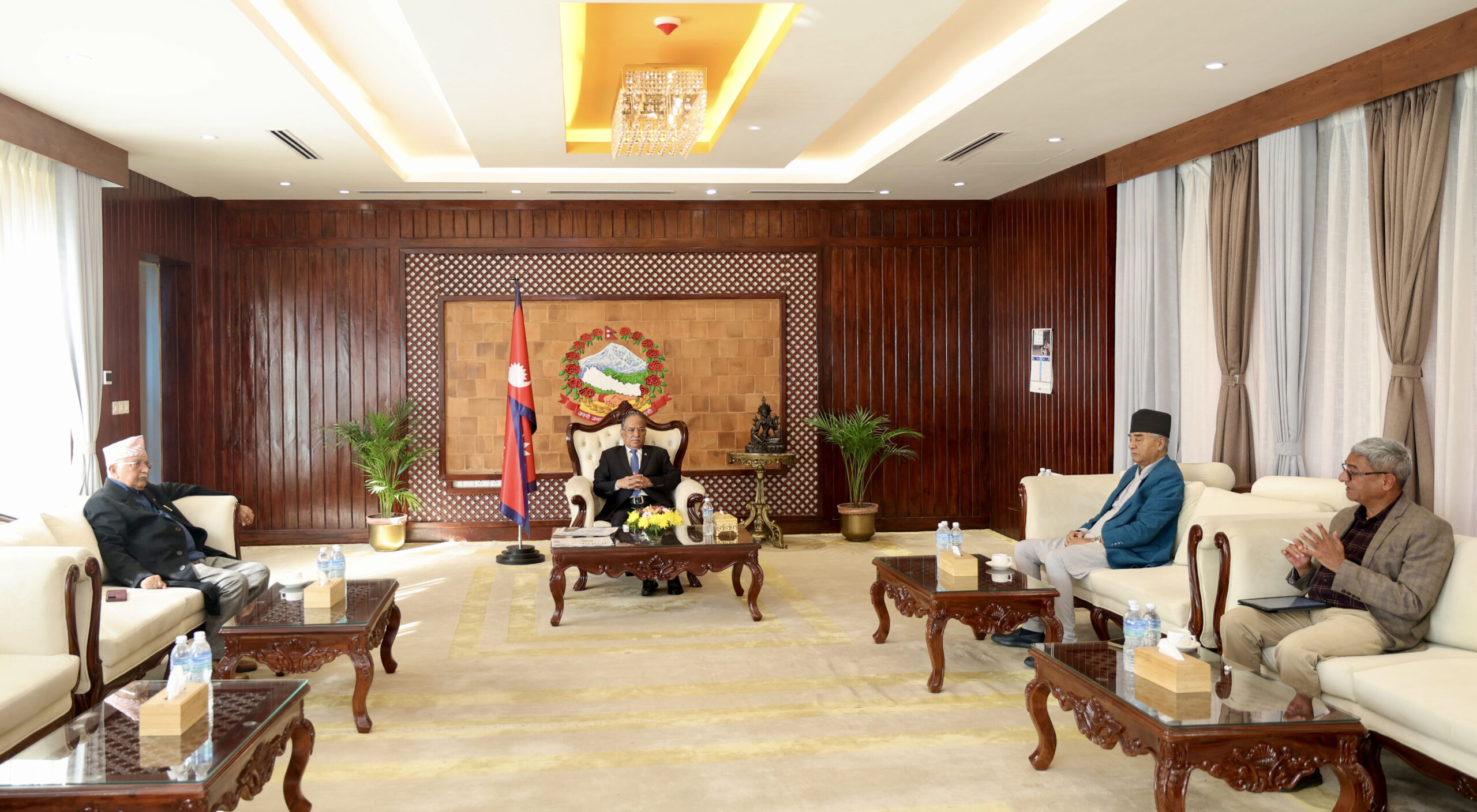 काठमाडौँ, ८ पुस । बालुवाटारमा शीर्ष दलका तीन नेताबीच भेटवार्ता भएको छ ।