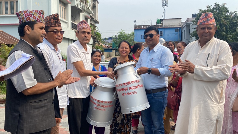 बिर्तामोड, १४ वैशाख । बिर्तामोड नगरपालिकाले बिहिवार दुग्ध किसानलाई चिलिङ्ग भ्याट, आल्मुनियमको मिल्क क्यान र दाना पिस्ने मेशिन हस्तान्तरण गरेको छ ।