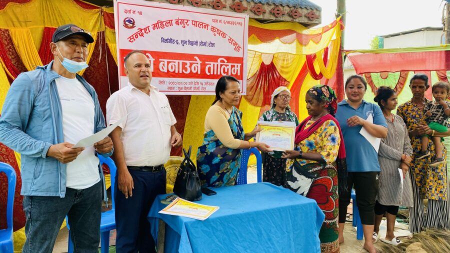 तालिममा सहभागीलाई स्थानीय विरु राईले प्रशिक्षण दिएका थिए । महिलाले घरमै बसेर उपयोगी कृषि सामग्री उत्पादन गर्न सक्ने भएकाले तालिमको व्यवस्था गरिएको तालिम आयोजक समिति संयोजक आइतमाया शेर्माले आग्रह गरिन् । सहभागीलाई नगर प्रमुख प्रसाई र वरिष्ठ योजना अधिकृत जय तिम्सिनाले प्रमाण पत्र दिएका थिए ।
