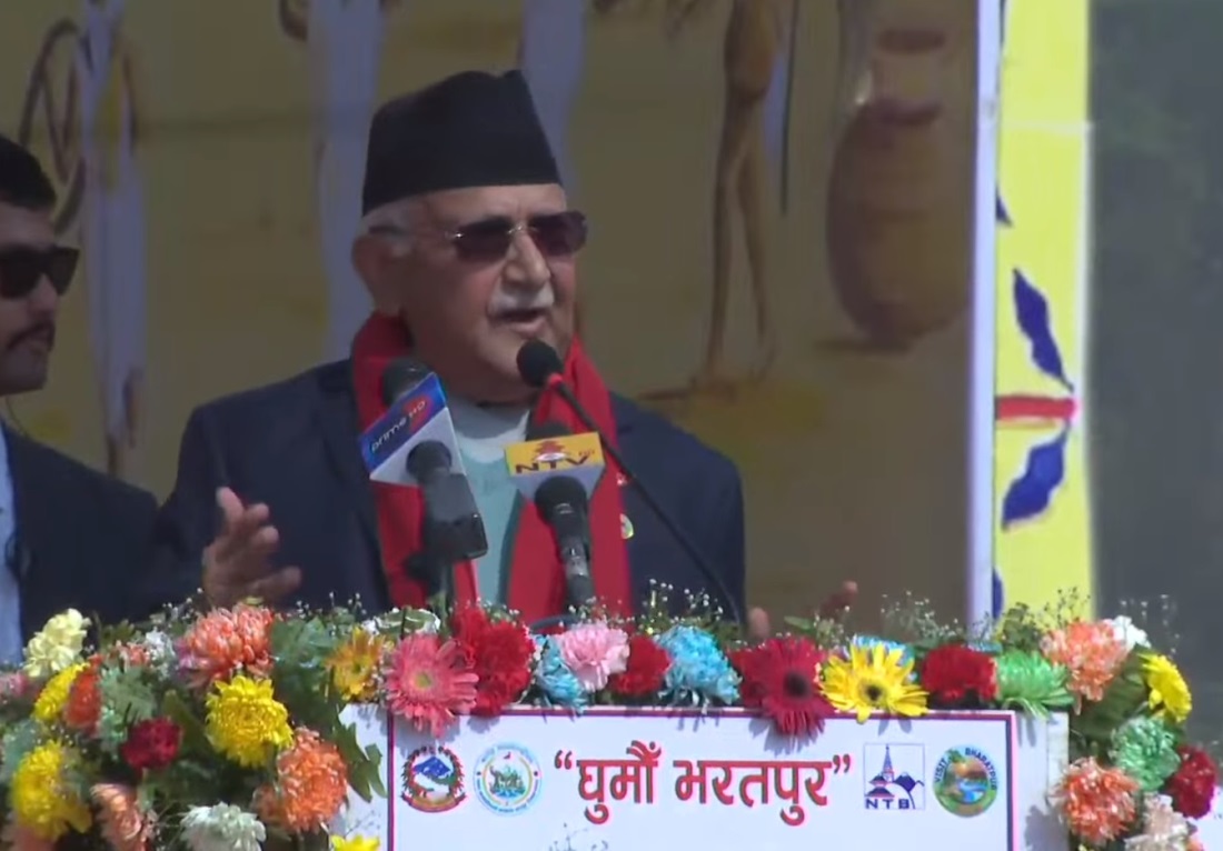 भरतपुर भ्रमण वर्ष २०२४ को नारायणी नदी किनारमा आयोजित उद्घाटन समारोहलाई आज सम्बोधन गर्दै अध्यक्ष ओलीले भरतपुर देशका विभिन्न क्षेत्रबाट बसाइँसराइ गरेर आएका र यहाँका आदिवासीको सुन्दर सम्मिश्रणको सहर भएको बताएका हुन् ।