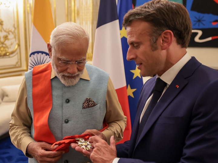 फ्रान्सका राष्ट्रपति इम्यानुएल म्याक्रोँले भारतीय प्रधानमन्त्री मोदीलाई ‘द ग्रान्ड क्रस अफ द लिजन अफ अनर’ बाट सम्मानित गरेका हुन् । यो फ्रान्सको सर्वोच्च नागरिक सम्मान हो ।